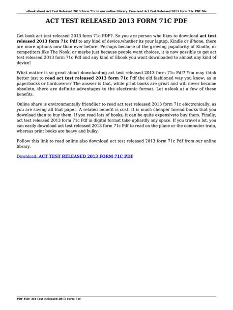 Download online act test released 2013 form 71c Kobo Google eBookstore